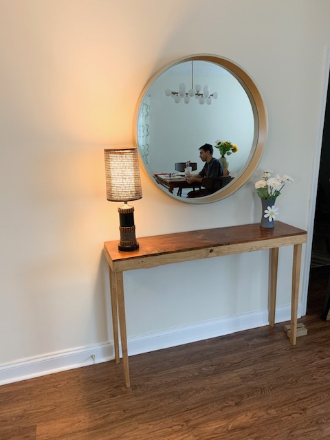 We were so excited to get the 4 rolls of wallpaper during the quarantine – there’s no better project than wallpapering a wall when you’re stuck inside. We got our peel and stick wallpaper from https://musewallstudio.com/ She delivered it fast and even helped me with a credit card mistake I made. Check out her great site if this is something you want to do. There are also sooo many options on Home Depot’s website and of course Etsy.